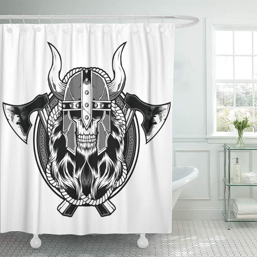 Ksadk Viking Skull Barbarian Axe Tattoo Sticker Warrior Ancient Battle Black Danger Shower Curtain 66x72 Inch Walmart Com